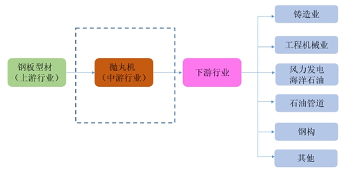 拋丸機(jī)行業(yè)上游主要是原材料供應(yīng)商鋼鐵(鋼板、型材),行業(yè)下游主要包括機(jī)械、汽車、飛機(jī)、摩托車、鐵路機(jī)車、造船、集裝箱、橋梁、化工、建筑等制造行業(yè)中的鑄件、鍛件、鋼材、型鋼的清砂與除銹,拋丸清理與表面強(qiáng)化。